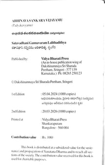A beautiful poetic biography of Sri Sri Sacchinadananda Shivabhinava Nrusimha Bharati Mahaswami ji written by Shatavadhani Sri Gannavaram Lalithaditya in Telugu. This work has been completed by the young Shatavadhani with direct orders from Sannidhanam Sri Sri Vidhushekara Bharati Mahaswamiji on the occasion of centenary celebrations of 'Abhinava Shankaralayam' in Mysore, which is the birth place of Sri Sacchinadananda Shivabhinava Nrusimha Bharati Mahaswami ji. This work is composed in poetic Telugu with padyams and gadyams and has been praised by well known scholars of Telugu.