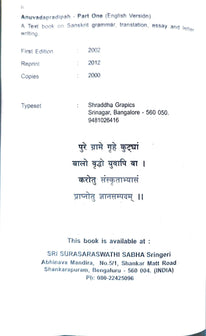 Anuvada Pradeepah – Part 1 (English Version) is a beginner-friendly book designed to help learners understand Sanskrit through simple lessons with English meanings. It offers step-by-step translation practice and builds a strong foundation in grammar and vocabulary. This book is the first of three parts and also prepares students for the examinations conducted by Shri Surabharati Sabha, Sringeri.