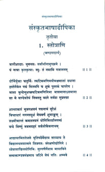 संस्कृतस्य अभ्यासाय एतत् पुस्तकं नितरां सायाय्यम् आचरति । एषः संस्कृतभाषादीपिका तृतीयः भागः वर्तते । अत्र सामान्यतः संस्कृतं ये जानन्ति , तेषां कृते अभ्यासार्थं बह्व्यः कथाः यथा – एकलव्यस्य गुरुभक्तिः, पतव्रतायाः माहात्म्यम् , श्रीशङ्करभगवत्पादाः, चित्रग्रीव कथा इत्यादयः तथैव सुभाषितानि, अभ्यासः च प्रदत्ताः वर्तन्ते । एषः श्रीसुरभारतीसभा शृङ्गेरी द्वारा प्रचलिष्यमाणायाः परीक्षायाः पाठ्यक्रमः अपि वर्तते । अस्य अध्यययनानन्तरं परीक्षां लिखित्वा, प्रमाणपत्रमपि प्राप्तुमर्हन्ति ।