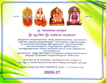 ಪರಾಭವ ಸಂವತ್ಸರದ (2026-27) ಈ ಪಂಚಾಂಗವು ಶ್ರೀ ಶಾರದಾ ಪೀಠದ ಪರಂಪರೆಯನ್ನು ಆಧರಿಸಿದ ಕನ್ನಡ ಪಂಚಾಂಗವಾಗಿದ್ದು, ವರ್ಷಪೂರ್ತಿ ತಿಥಿ, ನಕ್ಷತ್ರ, ಯೋಗ, ಕರಣ, ಹಬ್ಬಗಳು ಹಾಗೂ ಶುಭ ಮುಹೂರ್ತಗಳ ನಿಖರ ಮಾಹಿತಿಯನ್ನು ಒದಗಿಸುತ್ತದೆ. ಧಾರ್ಮಿಕ ಆಚರಣೆಗಳು ಮತ್ತು ದಿನನಿತ್ಯದ ಕಾಲನಿರ್ಣಯಕ್ಕೆ ಇದು ವಿಶ್ವಾಸಾರ್ಹ ಮಾರ್ಗದರ್ಶಕವಾಗಿದೆ.